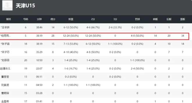 中国女篮中锋位置上人才井喷!这不15岁的柏荷雨欣也被大家看好!这次的全国U15女篮联赛中,柏荷雨欣就化身篮板王,帮助天津女篮所向披靡,尤其是在第5场的比赛当中,当时球队对阵甘肃U15女篮,柏荷雨打出了恐怖的数据,出战38分钟,24投12中,全场得到了28分,外加34个篮板。说实话,数据很惊人!但同样也令球迷惊喜!中国女篮后继有人了!